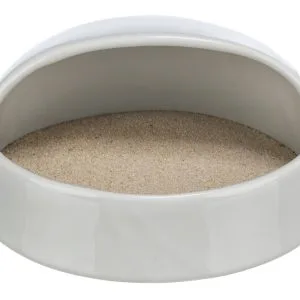 Besonders Zwerghamster mögen etwas geschützte Sandbäder, indenen sie sich in Ruhe und Sicherheit wälzen können.