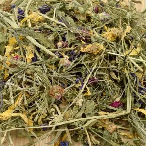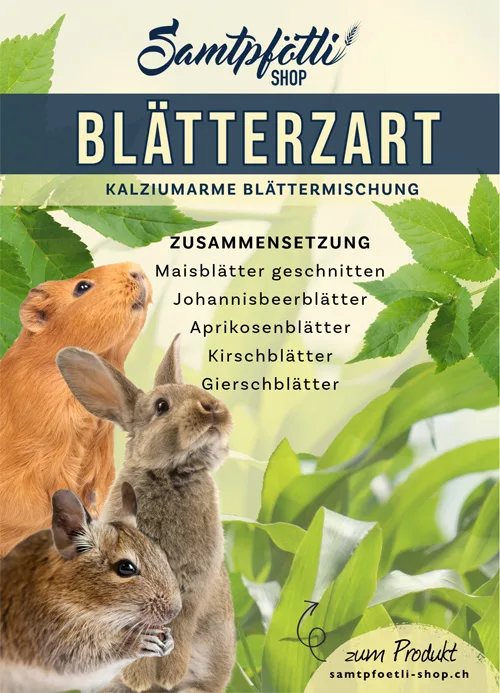 Wir haben diese Mischung aber auch ganz besonders für Meerschweinchen und Kaninchen erstellt. Die Blätter sind alle sehr zart ohne harte Teile und kalziumarm.